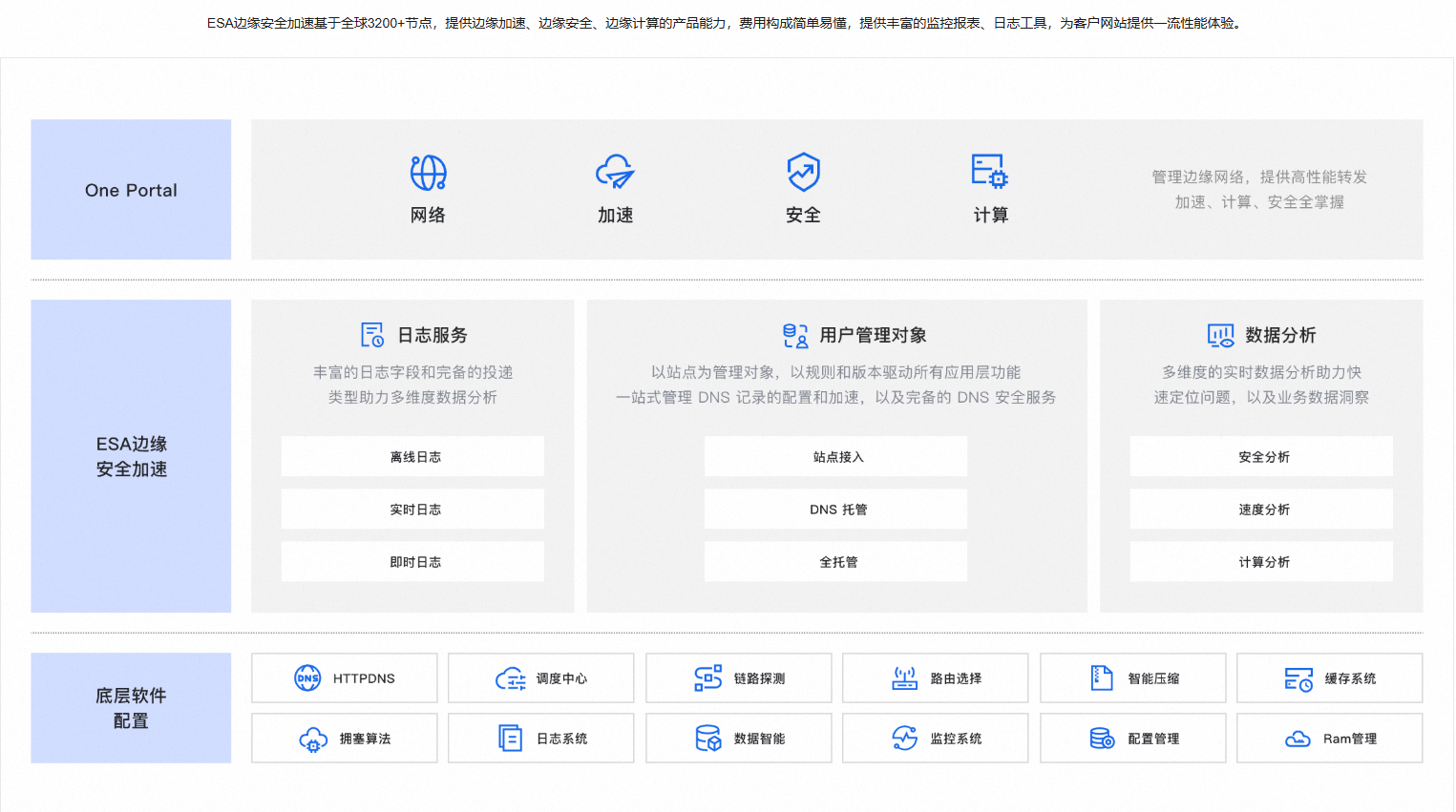 ESA边缘安全加速基于全球3200+节点,提供边缘加速、边缘安全、边缘计算的产品能力,费用构成简单易懂,提供丰富的监控报表、日志工具,为客户网站提供一流性能体验。